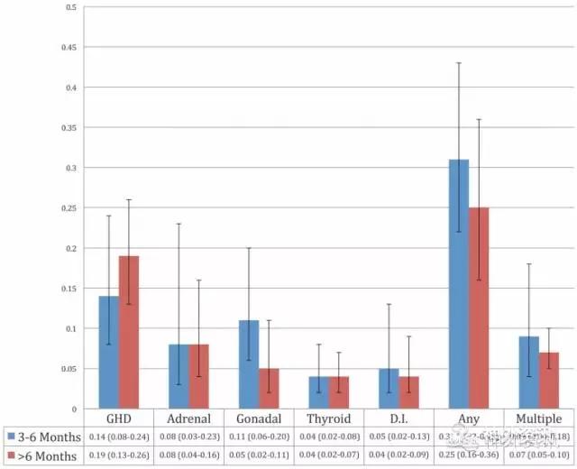 图3. GHD和任意垂体激素轴功能低下的发生情况。