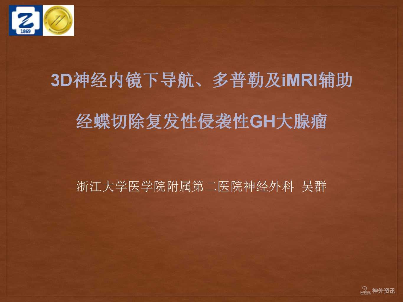 吴群,男,主任医师,浙医二院神经外科一病区副主任。1992年毕业于原浙江医科大学并留院工作,现为国家自然科学基金、浙江省自然科学基金等项目负责人,中华医学会神经外科学分会青年委员会委员,中国垂体瘤协作组委员兼秘书,获浙江省科技进步一等奖和三等奖各1项。