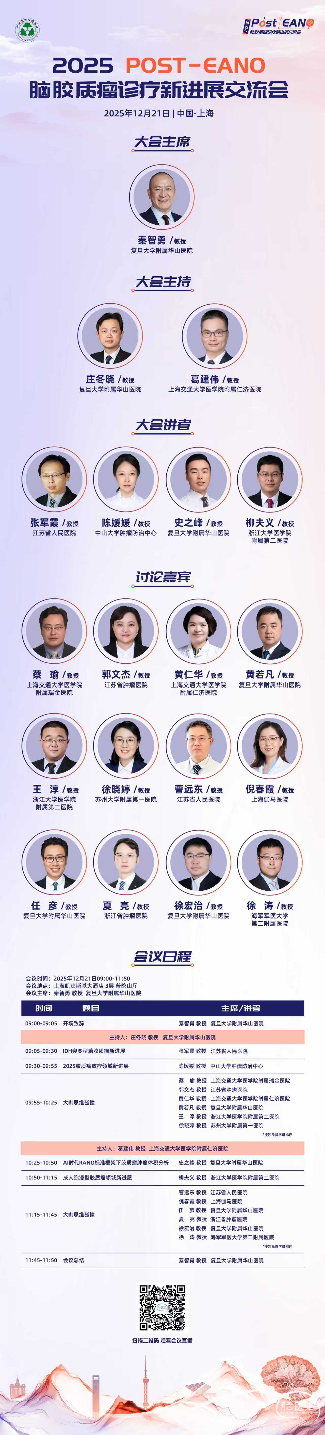 2025 Post EANO 胶质瘤领域进展学术研讨会 | 成都站丨2025 Post EANO 胶质瘤领域进展学术研讨会